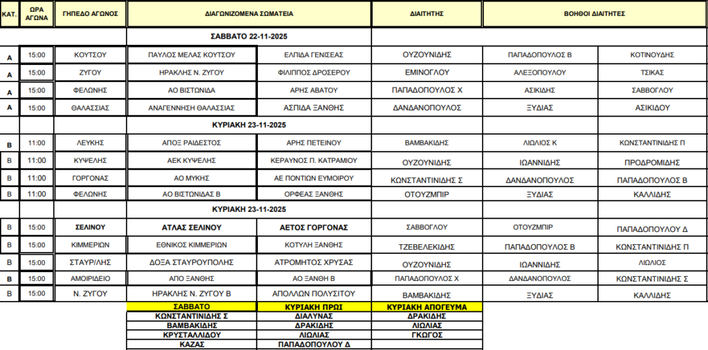 ΕΠΣ Ξάνθης: Το πρόγραμμα και οι διαιτητές των αγώνων του Σαββατοκύριακου
